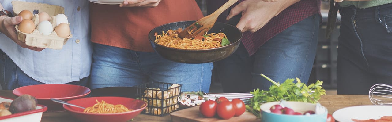 Free Photo Man Cooking Pasta Spaghetti At Home In The Kitchen